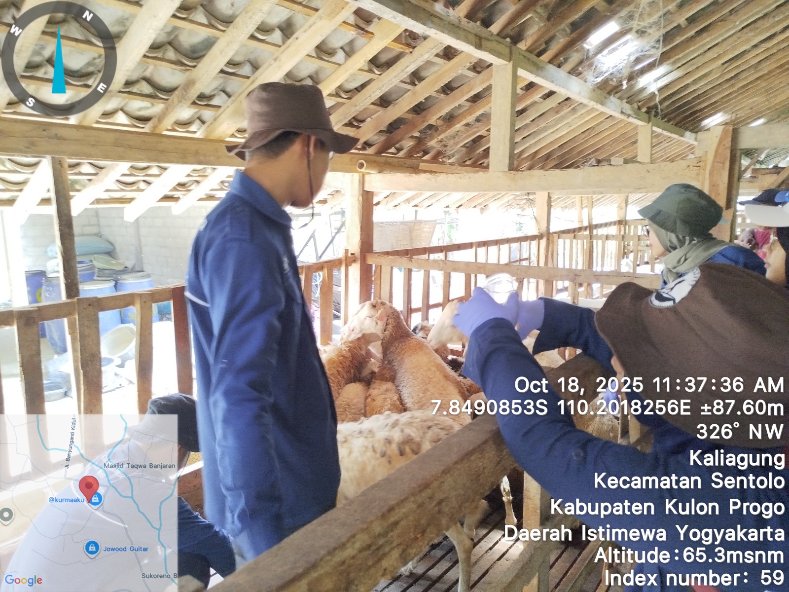 Di samping pelatihan manajemen pakan, program pengabdian UGM diperkaya dengan pemeriksaan kesehatan langsung pada unit kandang peternak. Tim melakukan pemeriksaan kesehatan menyeluruh yang mencakup pemeriksaan fisik umum dan pengambilan sampel feses untuk diuji di laboratorium. Hasil pemeriksaan menemukan adanya infeksi parasit gastrointestinal pada beberapa ternak. Temuan kasus parasit ini memberikan demonstrasi nyata dan sangat penting kepada peternak mengenai perlunya penerapan program kesehatan preventif secara rutin, seperti deworming (pemberian obat cacing), serta pemeriksaan kesehatan berkala. Intervensi ini esensial untuk menjaga performa ternak secara optimal, sekaligus meningkatkan kesadaran peternak bahwa manajemen kesehatan adalah kunci utama untuk mencapai produktivitas yang berkelanjutan.