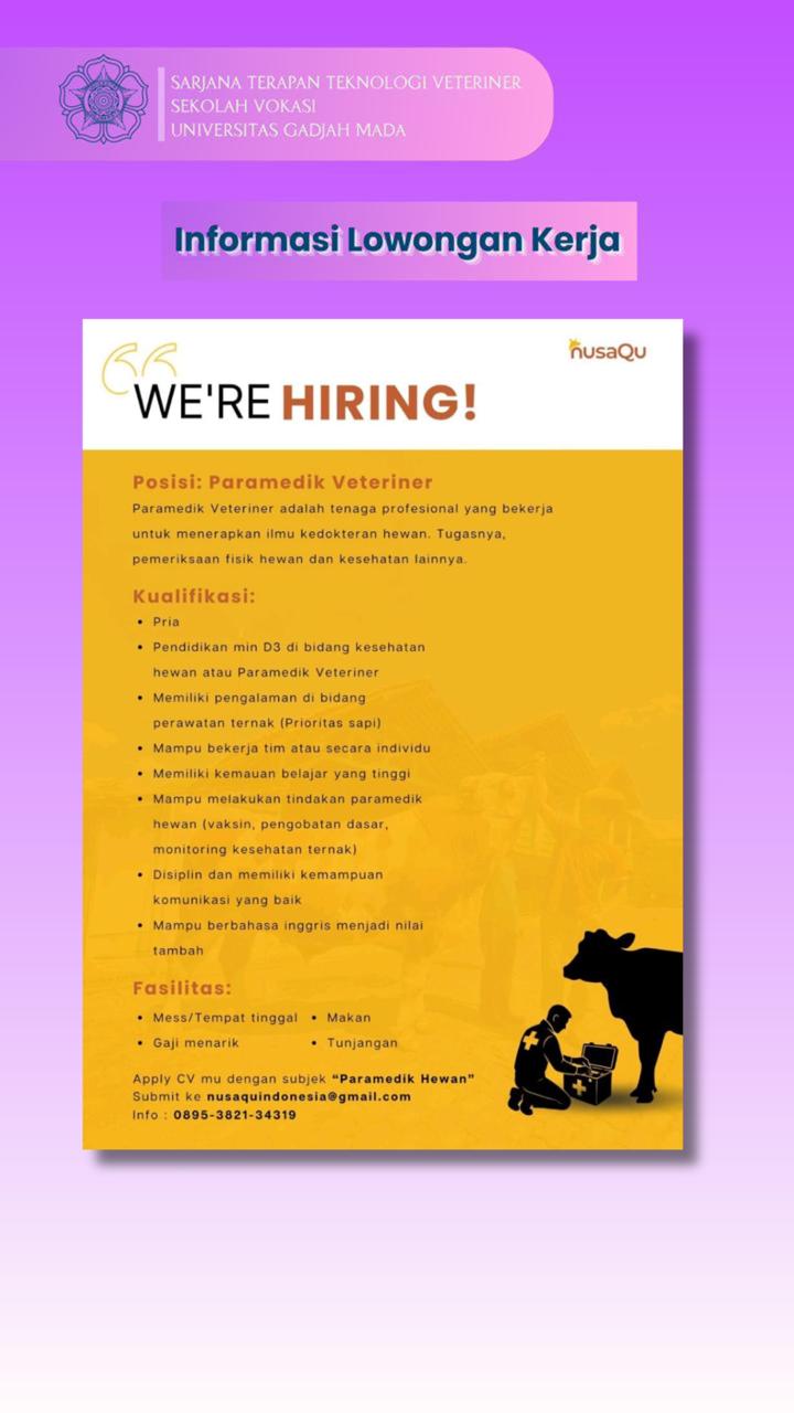 Dr. drh. Fathur Rohman Haryadi, M.Sc. dosen Program Studi Teknologi Veteriner, Sekolah Vokasi Universitas Gadjah Mada, resmi menyandang gelar Doktor (S3) pada 21 Oktober 2025. Gelar tersebut diraih setelah berhasil menyelesaikan studi doktoralnya di Program Studi Sains Veteriner, Fakultas Kedokteran Hewan, Universitas Gadjah Mada, dengan disertasi berjudul “Determinasi Morfologi Morfometri dan Karakterisasi Molekuler Eimeria zuernii di Pulau Jawa”. Dalam prosesi wisuda tersebut, Dr. Fathur terpilih sebagai perwakilan Fakultas dengan Indeks Prestasi Kumulatif (IPK) sempurna yaitu 4.00 (cumlaude). Hal serupa juga diperoleh saat kelulusan wisuda S2 dengan IPK 4.00 (cumlaude).